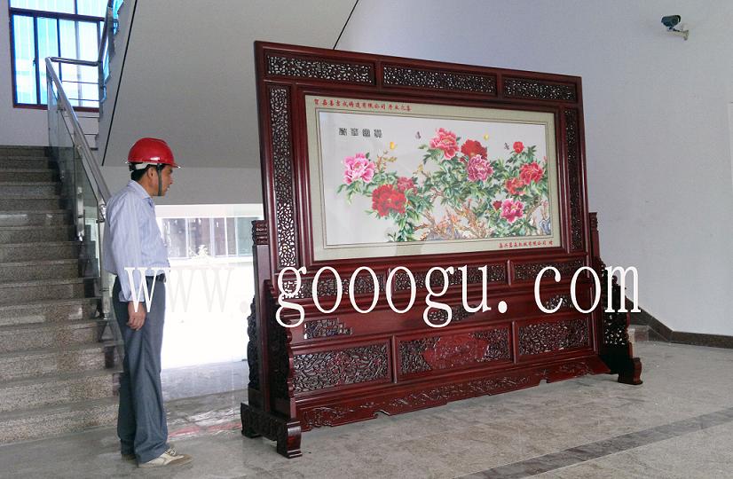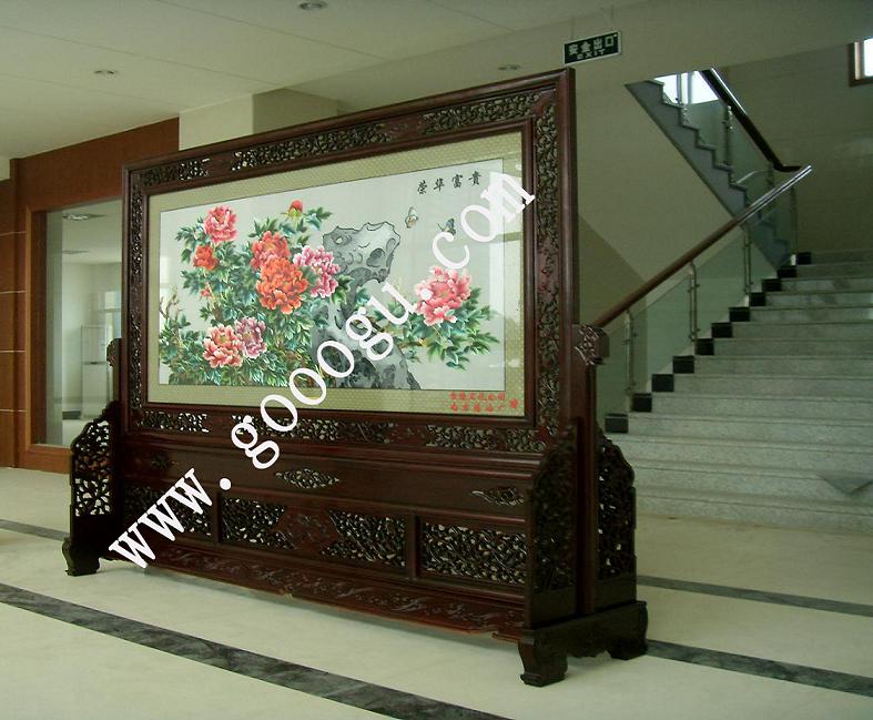 大型紅木屏風(fēng)定做&刺繡屏風(fēng)來樣定做加工*雙面繡大堂屏風(fēng)---山東某五星級(jí)酒店訂