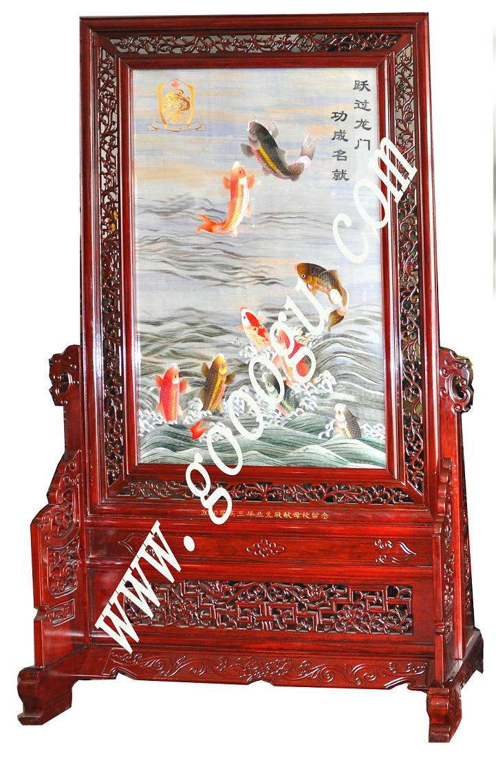 蘇繡小地屏 雙面刺繡小屏風(fēng)玄關(guān) 魚躍龍門圖 學(xué)校畢業(yè)紀(jì)念贈(zèng)品