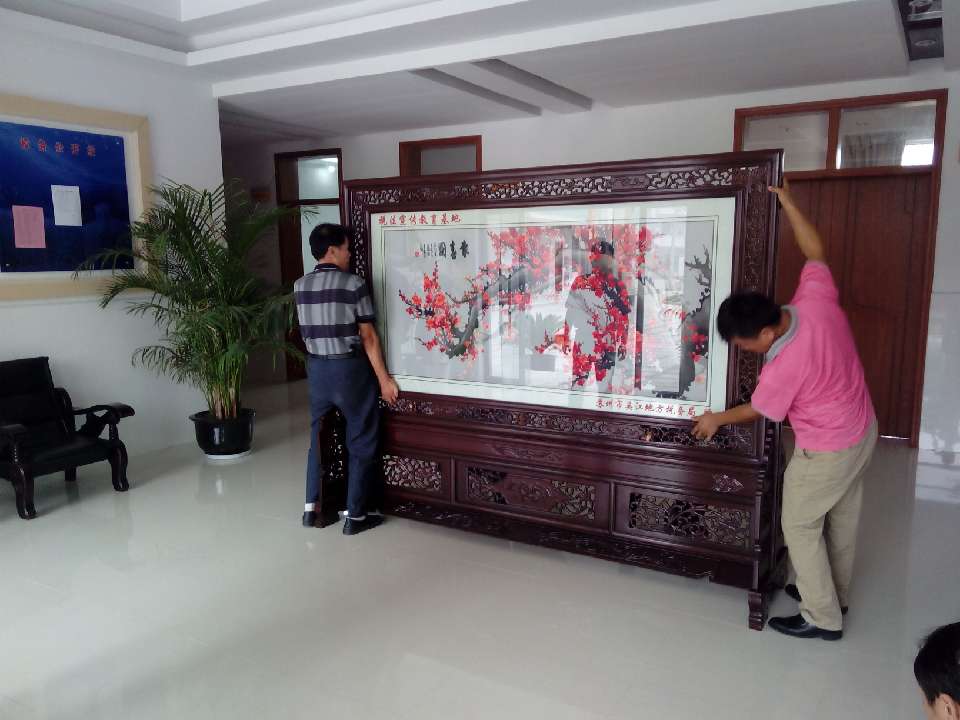 為了加強(qiáng)稅法教育的宣傳工作,蘇州吳江橫扇小學(xué)被設(shè)立為稅法宣傳教育基地,為此,蘇州吳江地方稅務(wù)局為了更好的普及稅法知識(shí)和積極做好宣傳工作,在蘇州嬌古蘇繡藝術(shù)品有限公司特定了一款梅花報(bào)春圖的雙面繡屏風(fēng),屏風(fēng)已順利完工,現(xiàn)由嬌古蘇繡工作人員送抵吳江橫扇小學(xué)并進(jìn)行安裝。