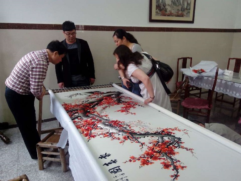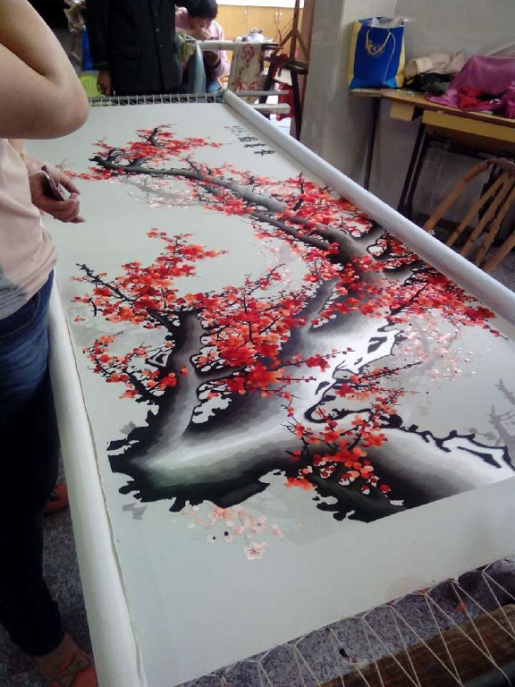 蘇州刺繡以其精細(xì)、傳神、精致著稱,近年來蘇繡也成為了裝飾類的新寵,不少蘇繡工藝品開始進(jìn)駐家裝、酒店、高級(jí)會(huì)所的市場,掀起了一股手工蘇繡熱,今年1月份湖北省人民政府工作人員來到蘇州嬌古蘇繡,在湖北省的洪山禮堂需要做一件手工蘇繡,嬌古蘇繡的領(lǐng)導(dǎo)非常重視,經(jīng)過政府領(lǐng)導(dǎo)的研究決定,選用梅花報(bào)春圖為題材做一副傳統(tǒng)的蘇繡屏風(fēng)。 .jpg)