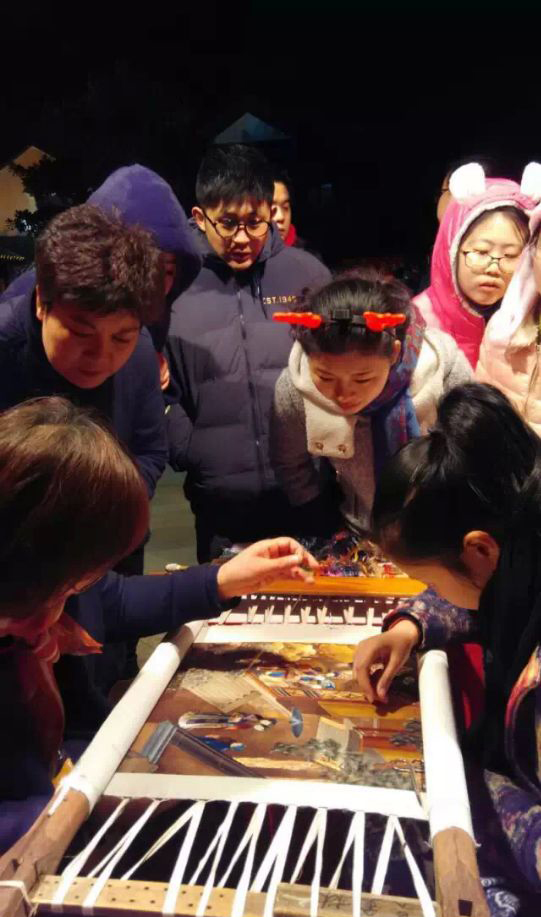 寒山寺本是蘇州城外的一座小寺廟,正因為唐朝張繼的一首《楓橋夜泊》而聞名中外,現(xiàn)已成為一處名勝古跡,“月落烏啼霜滿天,江楓漁火對愁眠。姑蘇城外寒山寺,夜半鐘聲到客船”寒山寺的悠悠鐘聲就在這詩韻中穿越了千年。在告別2014迎接2015的寒山寺第三十六屆新年聽鐘聲活動中,蘇州繡娘冒著寒風在活動現(xiàn)場演繹蘇繡技藝,給大家?guī)硪坏廓毺氐奈幕蟛汀?/p> .jpg)