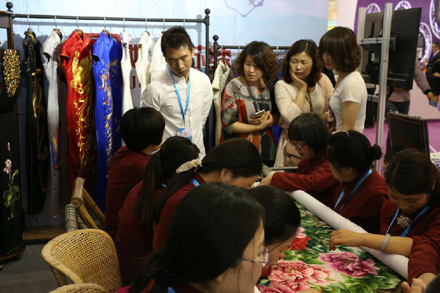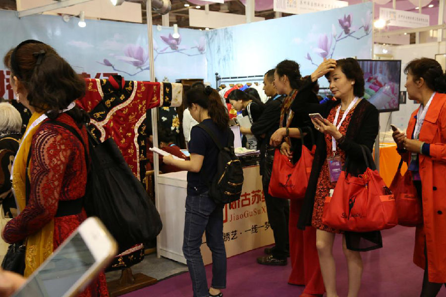 嬌古蘇繡展位吸引眾多蘇繡愛(ài)好者觀賞