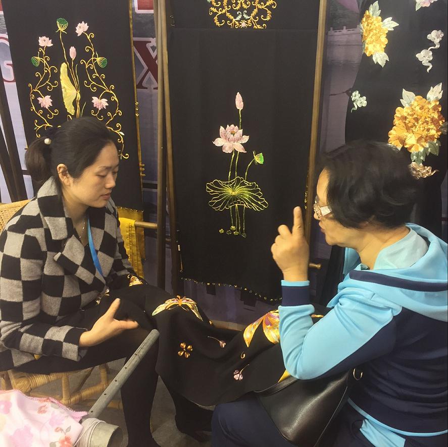 蘇繡大師姚惠芬、姚惠琴親臨嬌古蘇繡展位