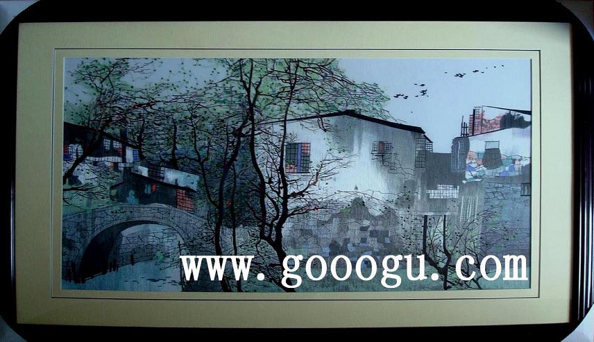 水鄉(xiāng)風(fēng)情刺繡|建筑刺繡畫(huà)|黑白裝飾畫(huà)