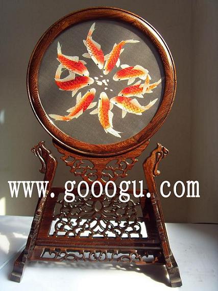 嬌古蘇繡木質(zhì)屏風 玄關(guān)雙面繡 簡易大方 十二紅魚圖特色中國風