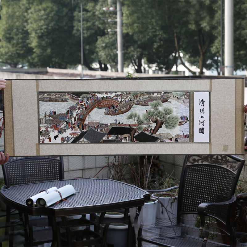 蘇州手工刺繡清明上河圖軟裱畫|蘇繡禮品|刺繡工藝品---780元/幅
