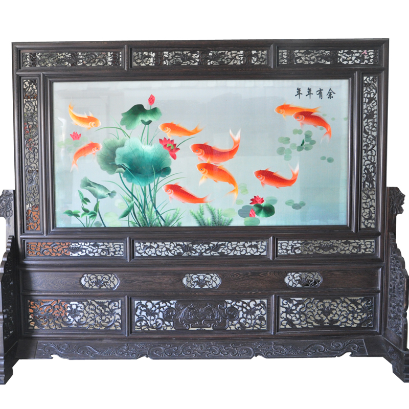 蘇繡蓮花魚屏風(fēng) 純手工工藝品 大廳會(huì)所入口隔斷 紅魚精品刺繡