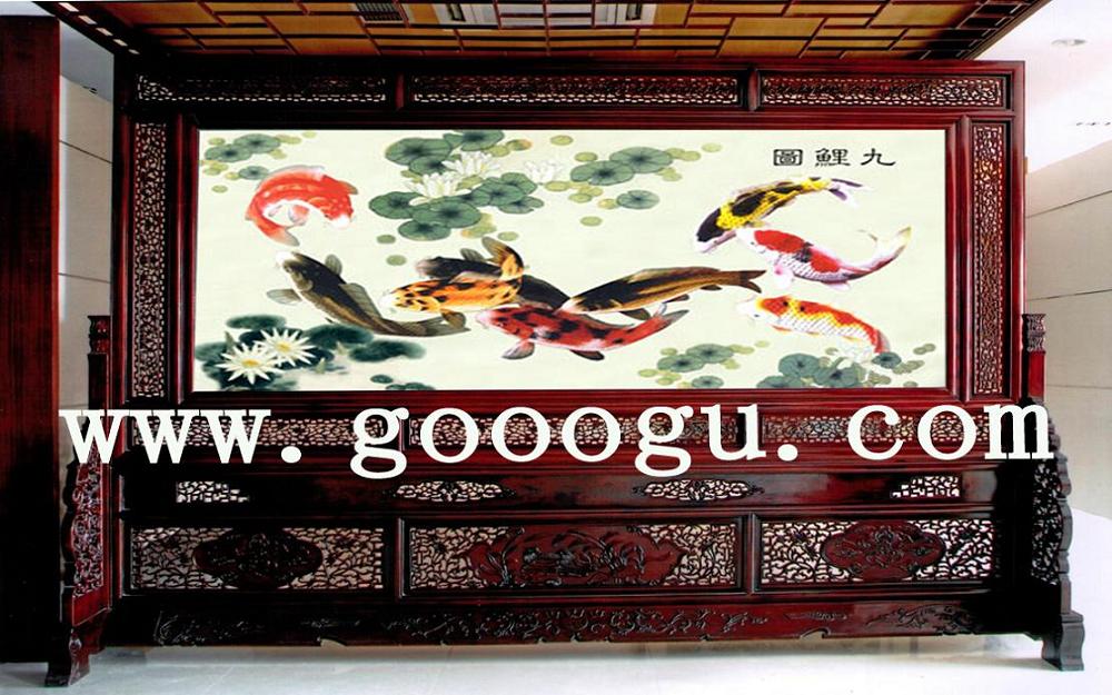 5.5米蘇州刺繡屏風(fēng)&大型九魚圖蘇繡屏風(fēng)&大型風(fēng)水玄關(guān)擺件