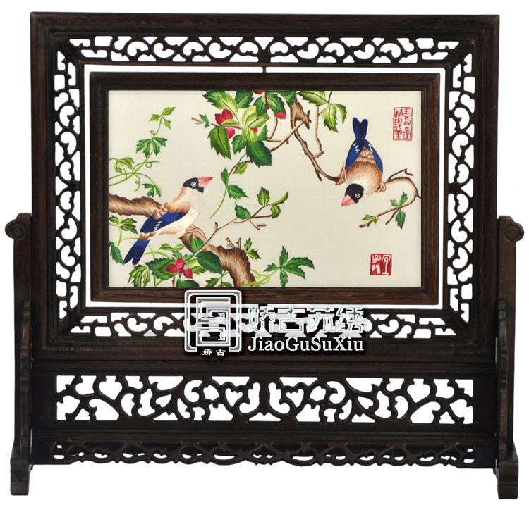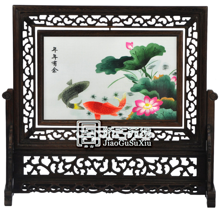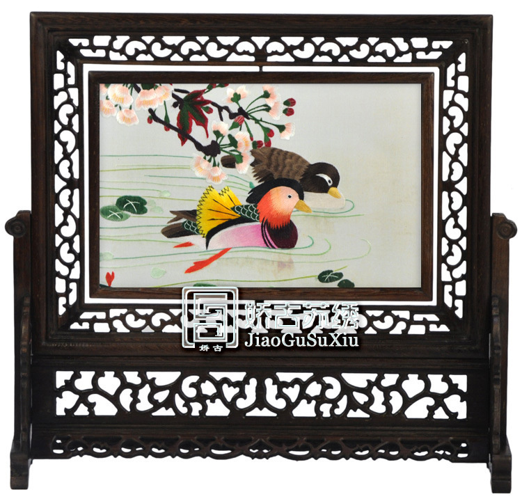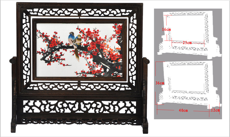 。 16X25厘米雞翅木橫架的常規(guī)疑問解答: 1.此款有多大規(guī)格? 答:此款畫心長25厘米,高16厘米(畫心指的是中間玻璃尺寸),是桌面臺(tái)屏小雙面繡。 2.此款雙面繡可以旋轉(zhuǎn)嗎? 答:此款雙面繡臺(tái)屏適合放在桌面做為擺件,可360度旋轉(zhuǎn)。 3.此款雙面繡材質(zhì)是什么? 答:此款雙面繡框架為雞翅木,木質(zhì)紋理清晰可見,古色古香。所繡畫面為桑蠶絲線,繡品完工后,用兩塊玻璃密封。因此此款雙面繡材質(zhì)為:木架、桑蠶絲線、玻璃。 4.此款雙面繡出廠價(jià)是多少?市場售價(jià)在多少左右? 答:此款雙面繡目前出廠價(jià)480元,包括產(chǎn)品成品及包裝。市場售價(jià)目前在1200元左右每件。 5.此款適合饋贈(zèng)外賓嗎?包裝是否精美? 答:此款公司開發(fā)銷售已多年,十分適合國內(nèi)外客戶需求,外賓收到都夸中國傳統(tǒng)手工藝品的精美哦。此款包裝為嬌古蘇繡設(shè)計(jì)包裝,有檔次。 6.此款雙面繡圖案有哪些?是否可加繡企業(yè)LOGO? 答:此款雙面繡圖案有近百種,有山水風(fēng)景、花卉花鳥、鳥魚蟲獸等。公司也可根據(jù)客戶需求量身定制圖案,加繡企業(yè)LOGO等服務(wù)。 7.此款雙面繡嬌古蘇繡公司是否備有大量現(xiàn)貨?可否直接來購買? 答:此款是公司常規(guī)款式,常年備有近千件現(xiàn)貨,可直接來公司選購。 |