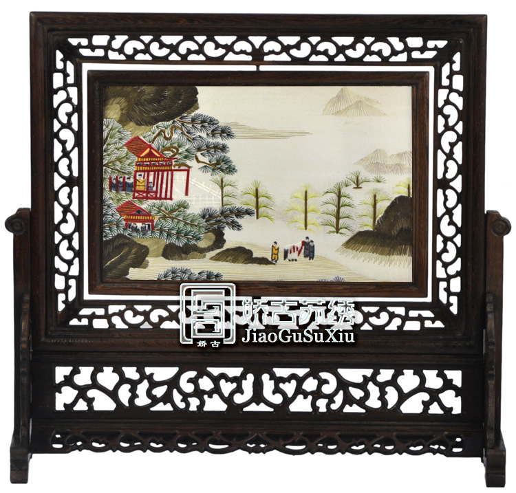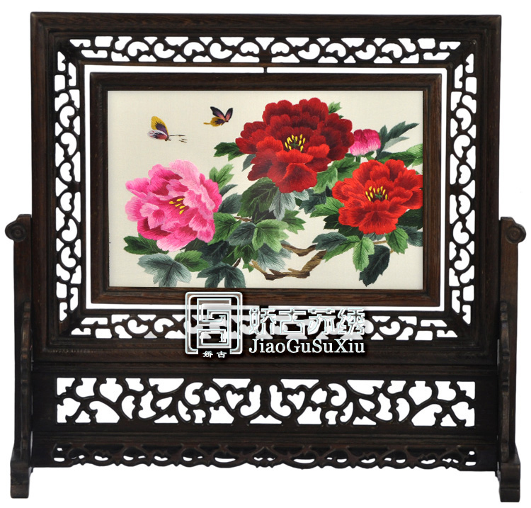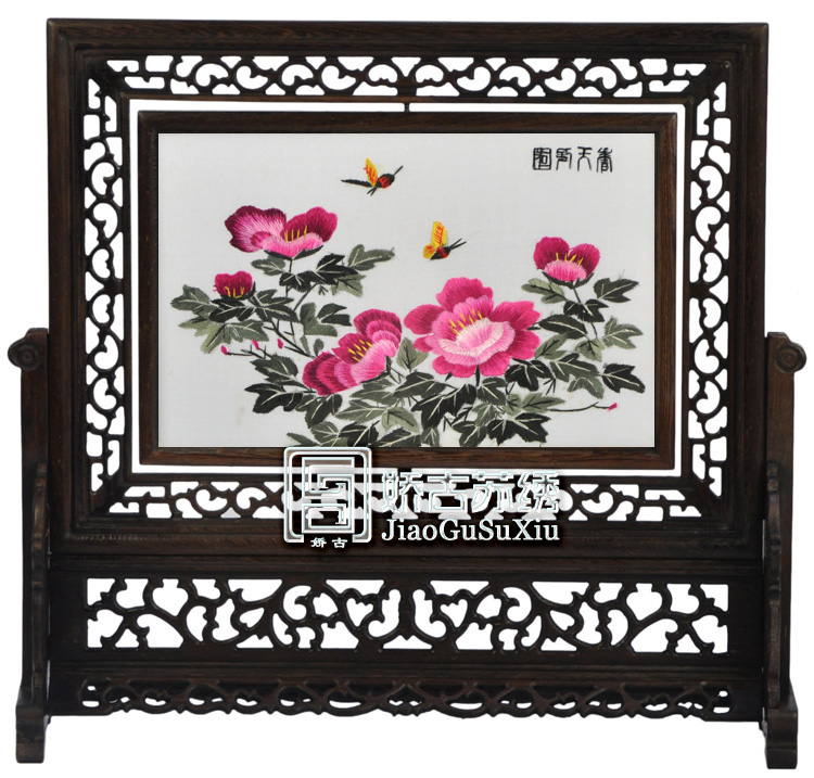產(chǎn)品名稱:16X25CM雞翅木橫座屏(雙面繡) (作品代碼:SJH-168) 產(chǎn)品規(guī)格:圖案尺寸16X25CM 外框整體尺寸寬40CM,高37CM 產(chǎn)品工藝:蘇手工刺繡。繡品圖案部分可360度旋轉(zhuǎn) 產(chǎn)品材質(zhì):真絲面料+桑蠶絲線+玻璃+木架 產(chǎn)品包裝:錦盒禮品裝、送嬌古蘇繡手提袋 產(chǎn)品重量(含包裝):2.0KG 嬌古出廠價(jià):480元/件 最小起訂量:20件----廠家直銷,可當(dāng)天發(fā)貨(可混配圖案) 產(chǎn)品描述:【16X25CM雞翅木橫座屏】蘇州雙面繡為蘇州繡娘手工刺繡而成,木框?yàn)樯系入u翅木打磨而成,易組裝。圖案有花卉(牡丹,梅花,荷花,蘭花等),花鳥,動(dòng)物(熊貓,老虎,魚等),山水,風(fēng)景,名家字畫等。圖案多達(dá)一百多種,有古色古香的,有現(xiàn)代氣息的,雅致典雅,是贈(zèng)送客人的特色禮品之一。 注:此款為蘇繡雙面繡中檔禮品款式,框架材質(zhì)上乘,材質(zhì)紋理清晰可見,手工刺繡做工精美之外講究整體的搭配與意境,是值的推薦的一款蘇繡禮品。(可根據(jù)需要加企業(yè)LOGO等)。 此款典型客人:常熟日油化工公司開業(yè)紀(jì)念品等