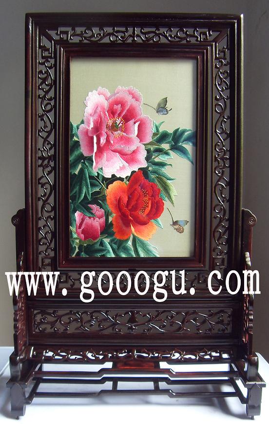 牡丹刺繡臺(tái)屏風(fēng)精品