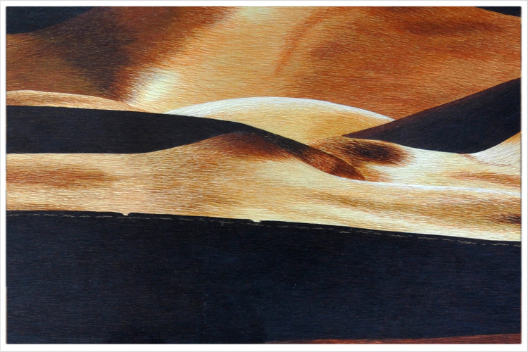 【品 牌】:嬌古 (作品代碼 D-1021) 【品 名】:駱駝與沙漠裝飾畫(手工蘇繡) 【品 質(zhì)】:1-2絲刺繡 (蘇繡小知識(shí):1根蘇繡絲線可分為16絲,中檔刺繡皆為10絲所繡,中高檔刺繡皆為6-8絲,高檔刺繡皆為4-6絲,精品刺繡皆為1-4絲) 【尺 寸】:畫心尺寸50*130cm 整體尺寸85*175cm 【產(chǎn)品工藝】:手工刺繡 【絲線材質(zhì)】:蠶絲線 【用 途】:政府禮品、外賓禮品、生日禮物、賀壽禮品、領(lǐng)導(dǎo)升遷、出國(guó)禮品等等。 【出廠價(jià)格】:65000元 【細(xì)節(jié)圖】