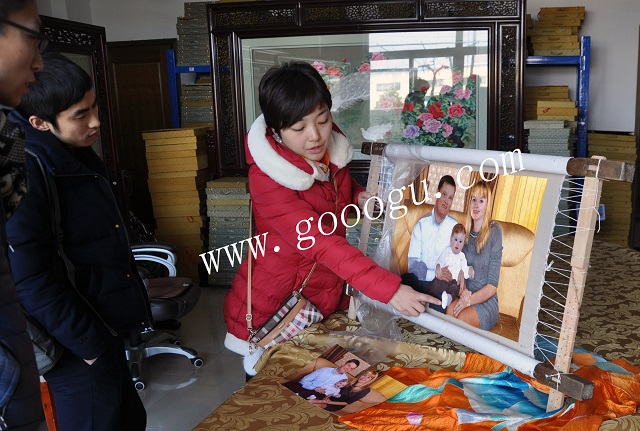以下是客戶定制的人物肖像作品,繡工精細(xì)程度已經(jīng)達(dá)到行業(yè)內(nèi)最高水平,客戶正在做認(rèn)真細(xì)致的對(duì)比,對(duì)作品的工藝是非常的滿意。