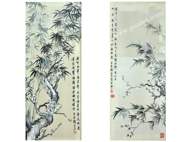【產(chǎn)品名稱】:紅木蘇繡屏風(fēng)---梅竹(雙面繡) (作品代碼:ZP-1004) 【產(chǎn)品規(guī)格】:圖案尺寸寬35CM每扇,高90CM每扇 外框整體尺寸寬60cm每扇,高210cm每扇 【產(chǎn)品工藝】:手工刺繡 【產(chǎn)品材質(zhì)】:真絲面料+紅木框+桑蠶絲線+玻璃 【產(chǎn)品包裝】:木箱包裝,用海綿包扎,確保運輸安全 【出廠價】:56800元 【產(chǎn)品運輸】:我司負責(zé)發(fā)往客戶指定地點,蘇州附近城市可送貨上門! 【產(chǎn)品說明】:此款紅木雙面繡折疊屏風(fēng),是由蘇州工藝師耗時數(shù)個月精心手工刺繡而成,刺繡圖案為中國傳統(tǒng)的梅花和竹子,繡工精細,顏色搭配均勻,整體給人舒適,愜意之感,紅木框架做工精細手工打磨,是蘇繡屏風(fēng)中的經(jīng)典作品。是企事業(yè)大堂或大廳的重要裝飾品之一!歡迎親臨嬌古蘇繡展示廳觀看實物! 【作品欣賞】 .jpg)