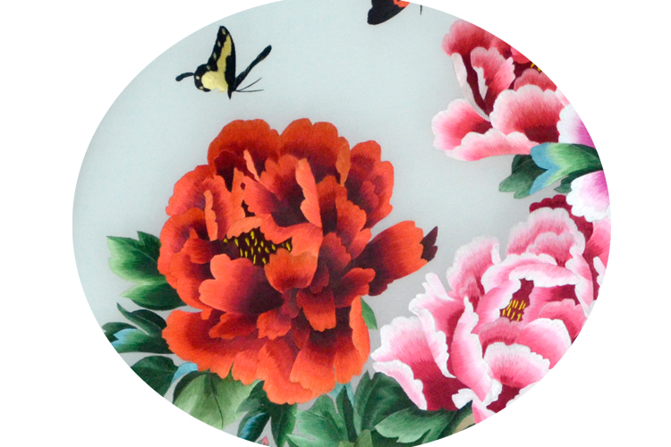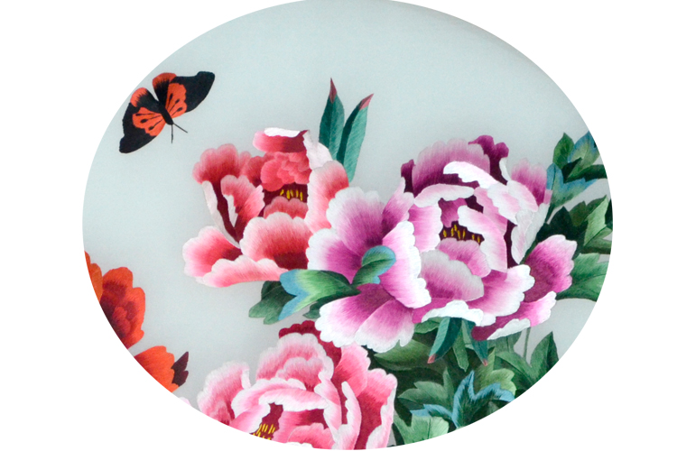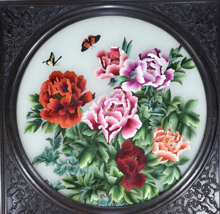 【產(chǎn)品名稱(chēng)】:蘇繡牡丹屏風(fēng)(雙面繡) (作品代碼:P-1107) 【產(chǎn)品規(guī)格】:圖案尺寸以80cm為直徑的圓 外框整體尺寸寬140cm,高193cm 【產(chǎn)品工藝】:手工刺繡 【產(chǎn)品材質(zhì)】:真絲面料+雞翅木框+桑蠶絲線(xiàn)+玻璃 【產(chǎn)品包裝】:木箱包裝,用海綿包扎,確保運(yùn)輸安全 【出廠(chǎng)價(jià)】:24000元 【產(chǎn)品運(yùn)輸】:我司負(fù)責(zé)發(fā)往客戶(hù)指定地點(diǎn),蘇州附近城市可送貨上門(mén)! 【產(chǎn)品說(shuō)明】:此款雙面繡屏風(fēng),是由蘇州工藝師耗時(shí)兩個(gè)月精心手工刺繡而成,刺繡圖案以牡丹為題材繡工精細(xì),顏色搭配均勻過(guò)渡自然,屏風(fēng)的框架選用進(jìn)口的雞翅木為料,是蘇繡屏風(fēng)中的經(jīng)典作品。是企事業(yè)大堂或大廳的重要裝飾品之一!歡迎親臨嬌古蘇繡展示廳觀(guān)看實(shí)物! 【作品欣賞】 .jpg)