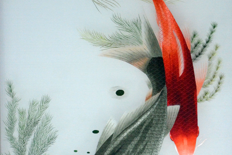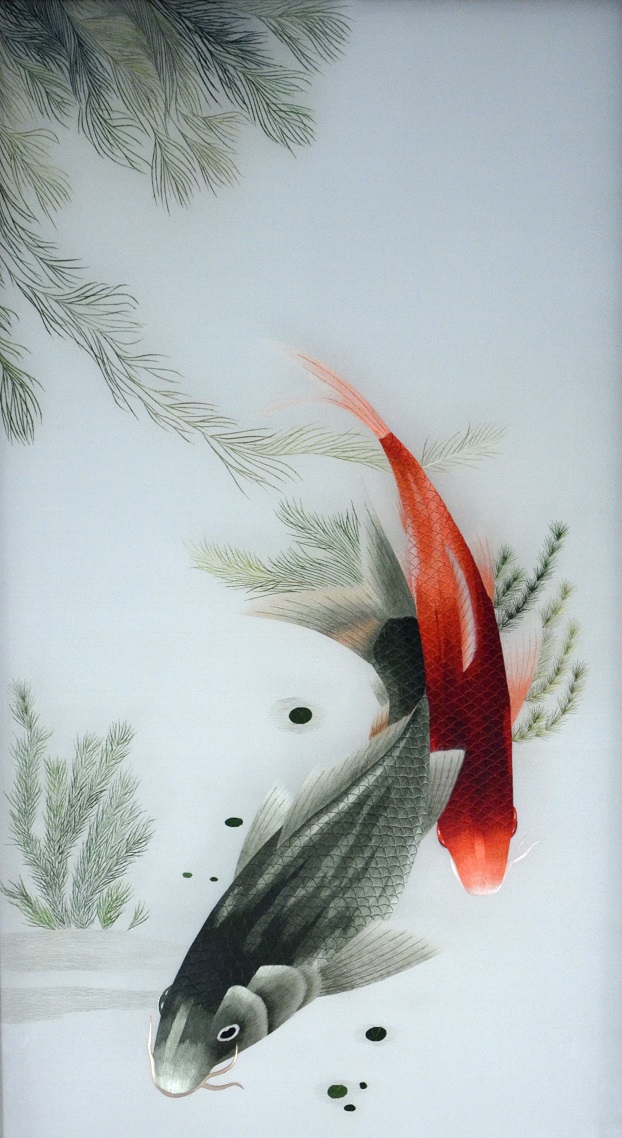 【產(chǎn)品名稱】:蘇繡水草魚屏風(雙面繡) (作品代碼:P-1201) 【產(chǎn)品規(guī)格】:圖案尺寸寬度60cm,高度125cm 外框整體尺寸寬100cm,高205cm 【產(chǎn)品工藝】:手工刺繡 【產(chǎn)品材質(zhì)】:真絲面料+雞翅木框+桑蠶絲線+玻璃 【產(chǎn)品包裝】:木箱包裝,用海綿包扎,確保運輸安全 【出廠價】:16000元 【市場零售參考價】:32000-42000元 【產(chǎn)品運輸】:我司負責發(fā)往客戶指定地點,蘇州附近城市可送貨上門! 【產(chǎn)品說明】:此款水草魚雙面繡屏風,是由蘇州工藝師耗時數(shù)個月精心手工刺繡而成,刺繡圖案以中國傳統(tǒng)的魚為題材繡工精細,寓意深刻,符合國人對傳統(tǒng)文化的保護和對未來社會的美好向往,整幅作品顏色搭配均勻過渡自然,屏風的框架選用進口的雞翅木為料,是蘇繡屏風中的珍稀作品。是居家和辦公的重要裝飾品之一!歡迎親臨嬌古蘇繡展示廳觀看實物! 【作品欣賞】 .jpg)
