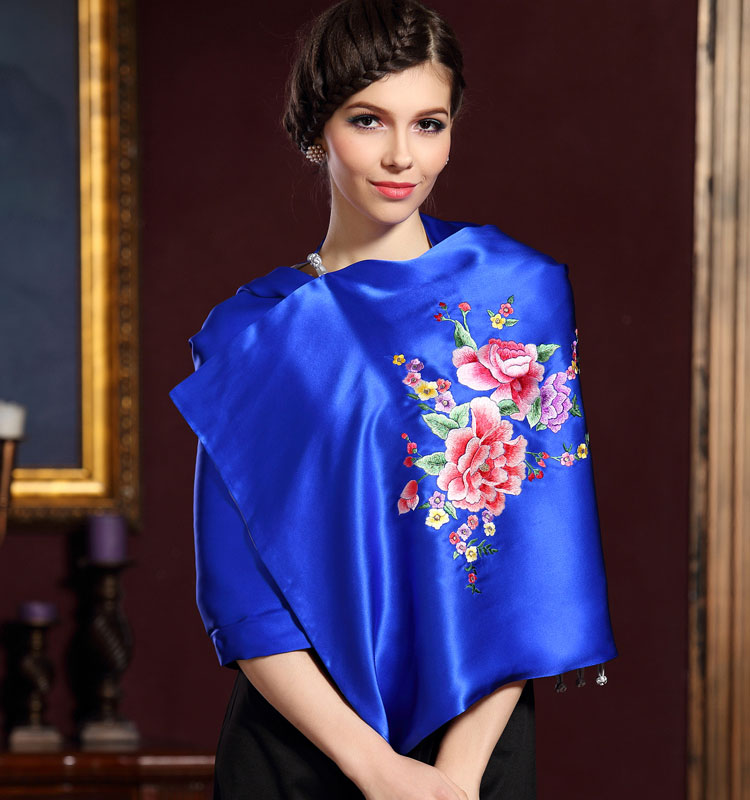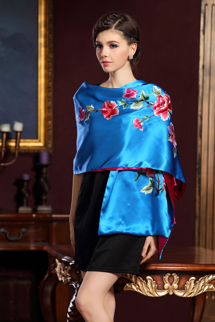高檔絲綢披肩 圍巾 真絲 雙層 手工刺繡 繡花 送客戶
