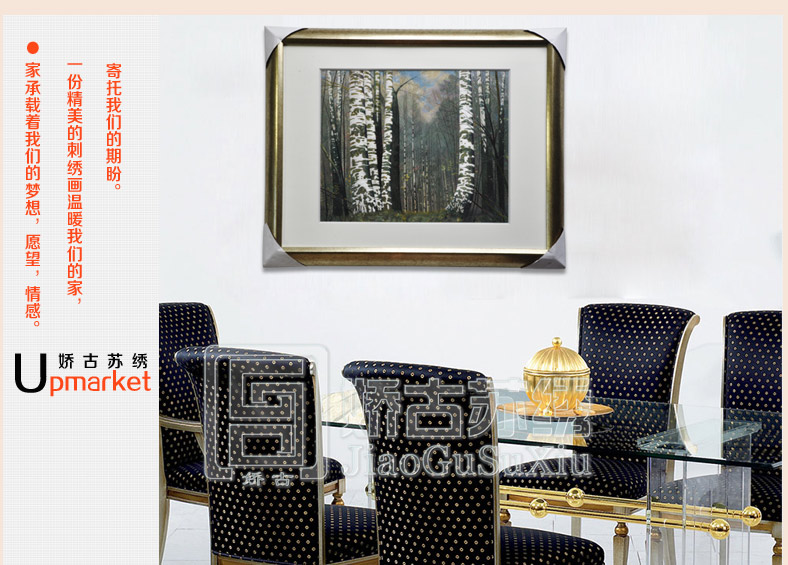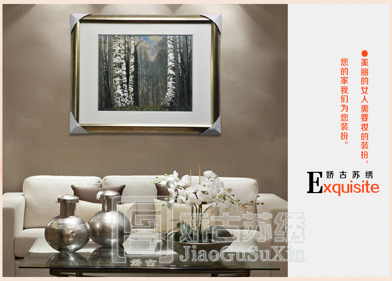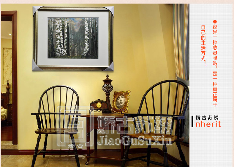 【品 牌】:嬌古 (作品代碼 D-1066)【品 名】:白樺林裝飾畫【尺 寸】:畫心尺寸50*60cm 整體尺寸80*97cm【產(chǎn)品工藝】:手工刺繡【絲線材質(zhì)】:蠶絲線 【用 途】:政府禮品、外賓禮品、生日禮物、領導升遷、出國禮品等等。【出廠價格】:14800元