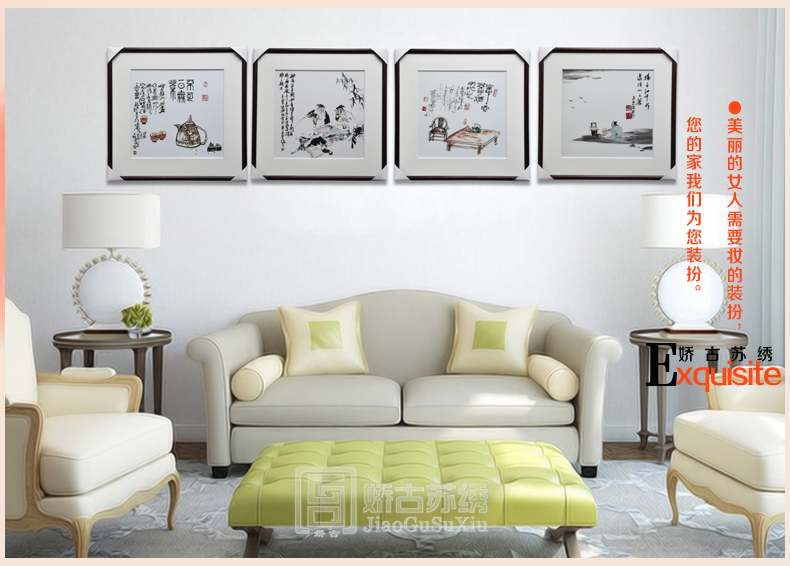 【品 牌】:嬌古 (作品代碼 D-1068) 【品 名】:中國(guó)元素裝飾畫(huà)(手工蘇繡) 【品 質(zhì)】:4-6絲刺繡 (蘇繡小知識(shí):1根蘇繡絲線可分為16絲,中檔刺繡皆為10絲所繡,中高檔刺繡皆為6-8絲,高檔刺繡皆為4-6絲,精品刺繡皆為1-4絲) 【尺 寸】:畫(huà)心尺寸50*50cm 整體尺寸75*75cm 【產(chǎn)品工藝】:手工刺繡+真絲底料 【絲線材質(zhì)】:蠶絲線 【用 途】:政府禮品、個(gè)人收藏、外賓禮品、生日禮物、賀壽禮品、領(lǐng)導(dǎo)升遷、出國(guó)禮品等等。 【出廠價(jià)格】:3000元/幅