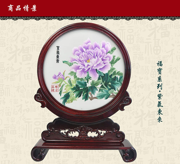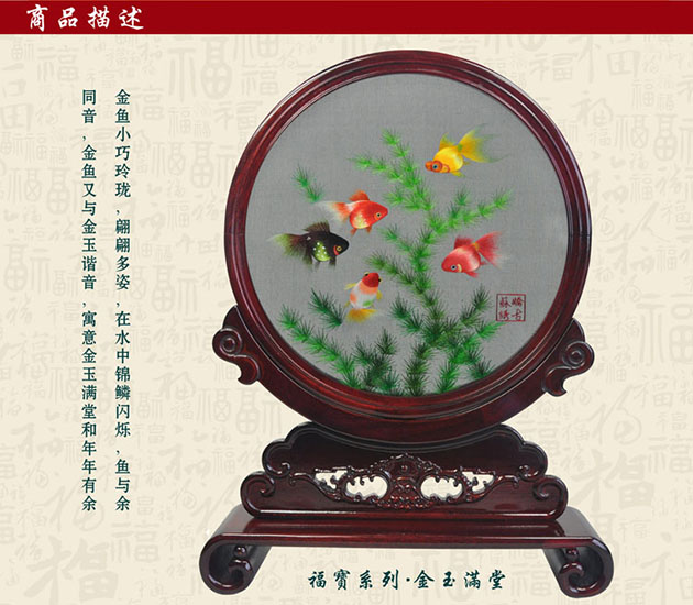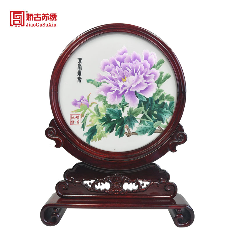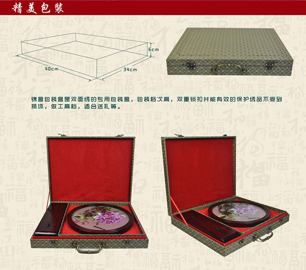 產(chǎn)品名稱:新款擺臺紫氣東來(雙面繡) (作品代碼:XS-289)產(chǎn)品規(guī)格:圖案尺寸25CM的圓外框整體尺寸寬39CM,高45CM產(chǎn)品工藝:蘇州繡娘手工刺繡。產(chǎn)品材質(zhì):真絲面料+桑蠶絲線+玻璃+紅木 產(chǎn)品包裝:錦盒禮品裝、贈嬌古蘇繡專用手提袋產(chǎn)品重量(含包裝):2KG左右嬌古出廠價:3200元/件